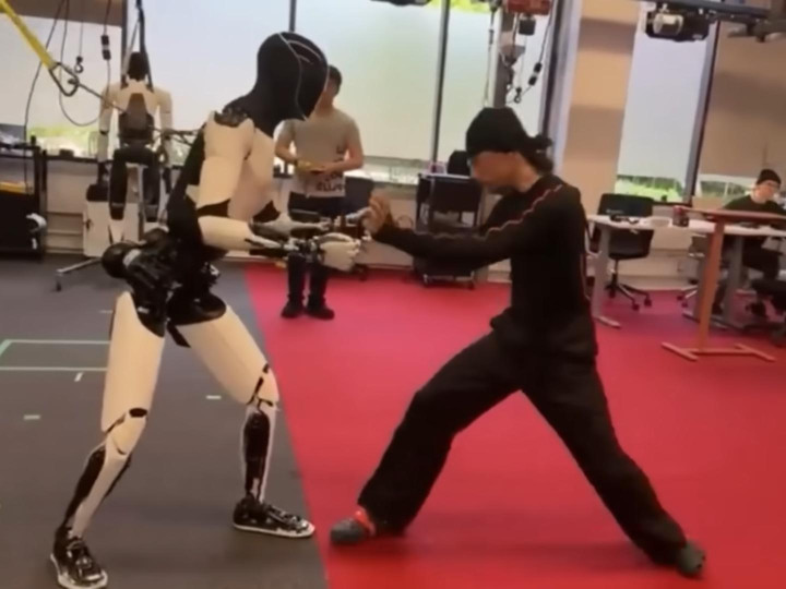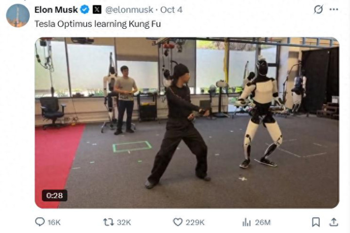 马斯克在网上晒了一段视频2025最可靠的网上股票配资公司,擎天柱机器人与人类进行对练,有很多经典的动作场面,如拳头对碰。