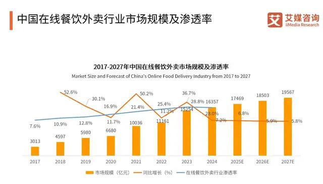国家统计局数据显示,2025年上半年全国餐饮收入27480亿元,同比增长4.3%。具体到外卖,2024年中国在线餐饮外卖市场规模为16357亿元,同比增长7.2%。倘若算上非餐品类外卖,即时零售大盘规模更加可观。
